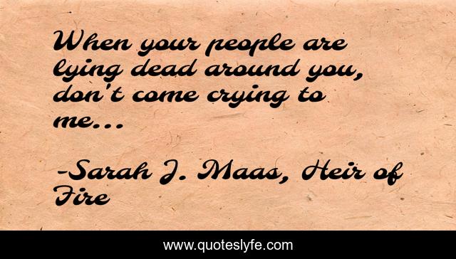 This page presents the quote "When your people are lying dead around you, don't come crying to me...". Author of this quote is Sarah J. Maas, Heir of Fire. This quote is about death, leadership, crying,.