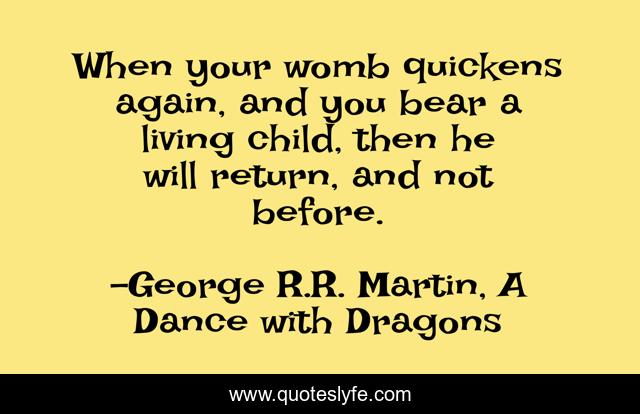 This page presents the quote "When your womb quickens again, and you bear a living child, then he will return, and not before.". Author of this quote is George R.R. Martin, A Dance with Dragons. This quote is about child, return, womb,.