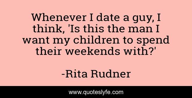 This page presents the quote "Whenever I date a guy, I think, 'Is this the man I want my children to spend their weekends with?'". Author of this quote is Rita Rudner. This quote is about children, man,.