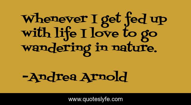 This page presents the quote "Whenever I get fed up with life I love to go wandering in nature.". Author of this quote is Andrea Arnold. This quote is about life, love, up, affection,.