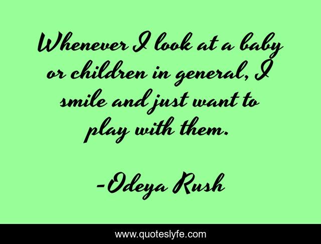 This page presents the quote "Whenever I look at a baby or children in general, I smile and just want to play with them.". Author of this quote is Odeya Rush. This quote is about baby, children,.