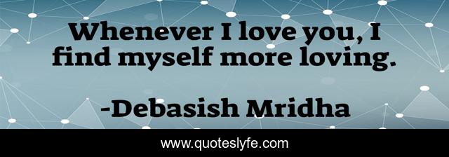 This page presents the quote "Whenever I love you, I find myself more loving.". Author of this quote is Debasish Mridha. This quote is about life, love, knowledge, inspirational, intelligence, philosophy, wisdom, quotes, affection,.