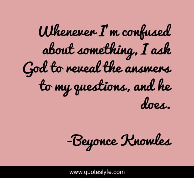 This page presents the quote "Whenever I'm confused about something, I ask God to reveal the answers to my questions, and he does.". Author of this quote is Beyonce Knowles. This quote is about questions, confused, answers,.