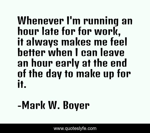 "Mark W. Boyer Quotes." Quoteslyfe.com, 2025. Sat. 06 Dec. 2025. <https://www.quoteslyfe.com/quote/Whenever-I-m-running-an-hour-late-149789>.