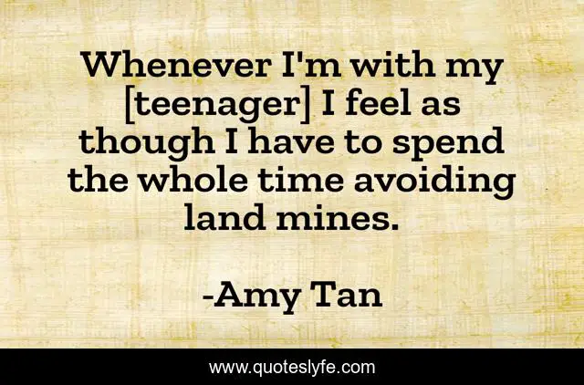 This page presents the quote "Whenever I'm with my [teenager] I feel as though I have to spend the whole time avoiding land mines.". Author of this quote is Amy Tan. .
