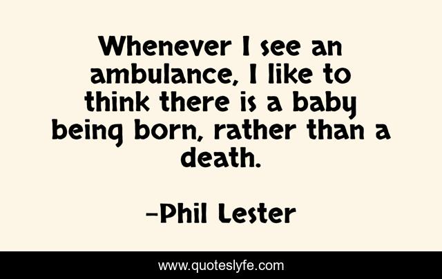 This page presents the quote "Whenever I see an ambulance, I like to think there is a baby being born, rather than a death.". Author of this quote is Phil Lester. This quote is about life, death, optimism, health, way-of-thinking, goodness, life-and-living, happiness,.