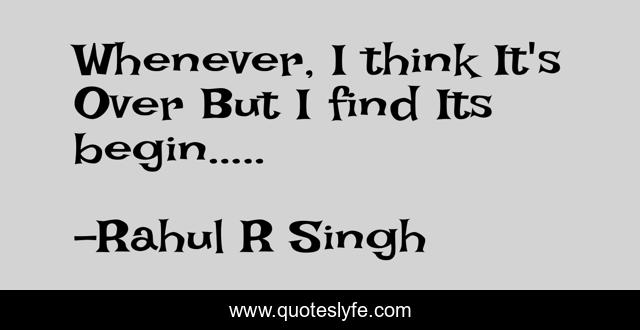 This page presents the quote "Whenever, I think It's Over But I find Its begin.....". Author of this quote is Rahul R Singh. This quote is about life, love, emotions, hurt, etc, heartbreak, inspirational, enthusiasm, affection,.