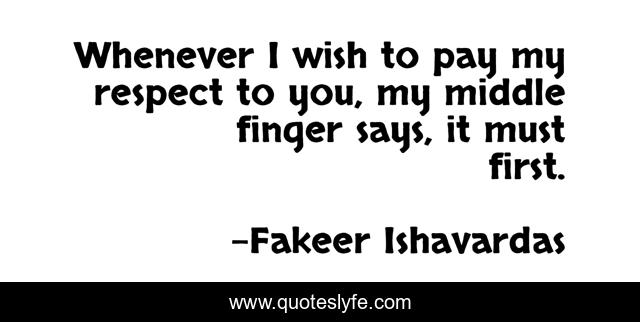 Whenever I wish to pay my respect to you, my middle finger says, it must first.