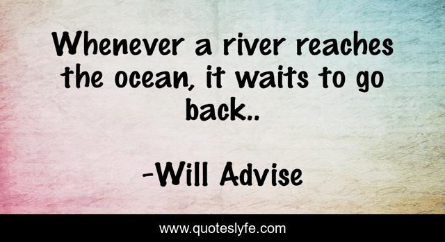 This page presents the quote "Whenever a river reaches the ocean, it waits to go back..". Author of this quote is Will Advise. This quote is about cycle-of-life, returning, philosophy, ocean, waiting, going-back, river,.