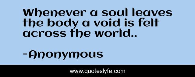 This page presents the quote "Whenever a soul leaves the body a void is felt across the world..". Author of this quote is Anonymous. This quote is about life, death, love, philosophy, inspirational, life-philosophy, deep-thoughts, enthusiasm, affection,.