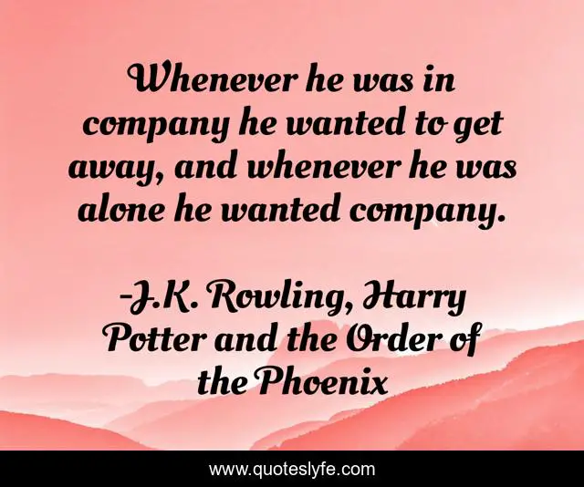 This page presents the quote "Whenever he was in company he wanted to get away, and whenever he was alone he wanted company.". Author of this quote is J.K. Rowling, Harry Potter and the Order of the Phoenix. This quote is about anxiety, contentment,.