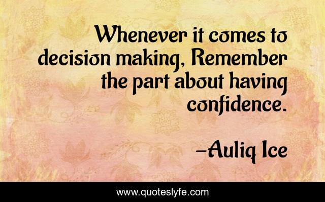 This page presents the quote "Whenever it comes to decision making, Remember the part about having confidence.". Author of this quote is Auliq Ice. This quote is about decision-making, decisions, consequences, choices,.