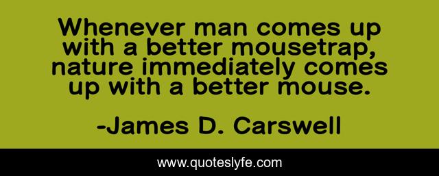 This page presents the quote "Whenever man comes up with a better mousetrap, nature immediately comes up with a better mouse.". Author of this quote is James D. Carswell. This quote is about science, evolution, humor, nature,.