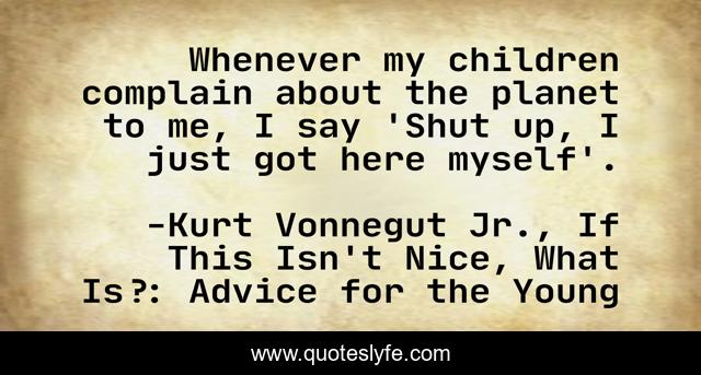 "Kurt Vonnegut Jr., If This Isn't Nice, What Is?: Advice for the Young Quotes." Quoteslyfe.com, 2025. Mon. 08 Dec. 2025. <https://www.quoteslyfe.com/quote/Whenever-my-children-complain-about-the-planet-167213>.