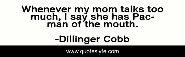 This page presents the quote "Whenever my mom talks too much, I say she has Pac-man of the mouth.". Author of this quote is Dillinger Cobb. This quote is about humor, pac-man, family, mothers,.