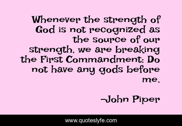 This page presents the quote "Whenever the strength of God is not recognized as the source of our strength, we are breaking the First Commandment: Do not have any gods before me.". Author of this quote is John Piper. This quote is about me, god, first,.