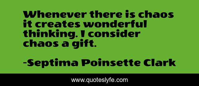 This page presents the quote "Whenever there is chaos it creates wonderful thinking. I consider chaos a gift.". Author of this quote is Septima Poinsette Clark. .