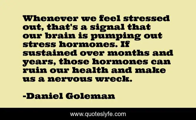 This page presents the quote "Whenever we feel stressed out, that's a signal that our brain is pumping out stress hormones. If sustained over months and years, those hormones can ruin our health and make us a nervous wreck.". Author of this quote is Daniel Goleman. This quote is about brain, stress, stressed,.