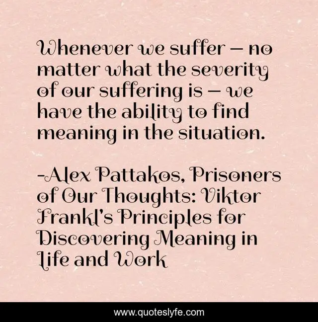 "Alex Pattakos, Prisoners of Our Thoughts: Viktor Frankl's Principles for Discovering Meaning in Life and Work Quotes." Quoteslyfe.com, 2025. Fri. 05 Dec. 2025. <https://www.quoteslyfe.com/quote/Whenever-we-suffer-no-matter-what-the-143723>.