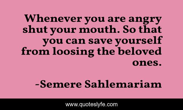 This page presents the quote "Whenever you are angry shut your mouth. So that you can save yourself from loosing the beloved ones.". Author of this quote is Semere Sahlemariam. .