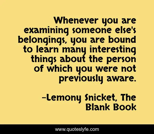 This page presents the quote "Whenever you are examining someone else's belongings, you are bound to learn many interesting things about the person of which you were not previously aware.". Author of this quote is Lemony Snicket, The Blank Book. .