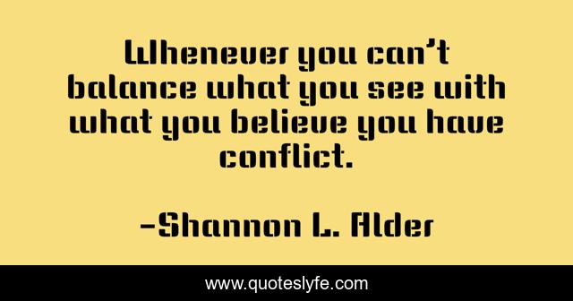 This page presents the quote "Whenever you can’t balance what you see with what you believe you have conflict.". Author of this quote is Shannon L. Alder. This quote is about people, perspective, prayer, lack-of-peace, relationships, lack-of-knowledge, disbelief, seekers, religion,.
