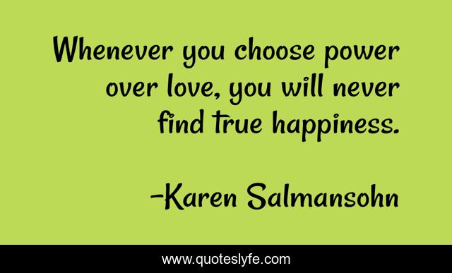 This page presents the quote "Whenever you choose power over love, you will never find true happiness.". Author of this quote is Karen Salmansohn. This quote is about love, power, affection,.
