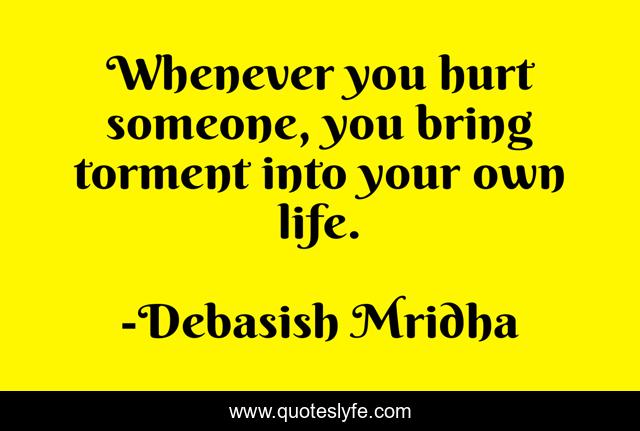 This page presents the quote "Whenever you hurt someone, you bring torment into your own life.". Author of this quote is Debasish Mridha. This quote is about bring-torment-into-your-own-life, philosophy, debasish-mridha, quotes, hurt-someone, inspirational, hurting-others, enthusiasm, debasish-mridha-m-d,.