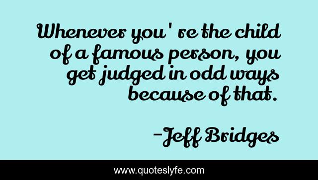 This page presents the quote "Whenever you're the child of a famous person, you get judged in odd ways because of that.". Author of this quote is Jeff Bridges. This quote is about person, child,.