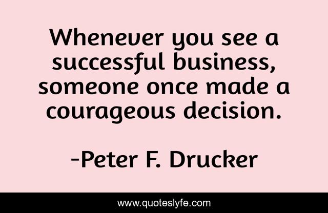 This page presents the quote "Whenever you see a successful business, someone once made a courageous decision.". Author of this quote is Peter F. Drucker. This quote is about leadership, business, decision-making,.