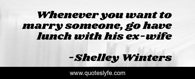 This page presents the quote "Whenever you want to marry someone, go have lunch with his ex-wife". Author of this quote is Shelley Winters. This quote is about divorce, humor, marriage, ex-wife,.