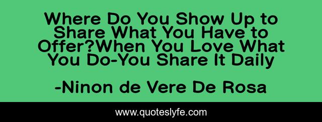 This page presents the quote "Where Do You Show Up to Share What You Have to Offer?When You Love What You Do-You Share It Daily". Author of this quote is Ninon de Vere De Rosa. This quote is about poems, sonnets, passion, author,.