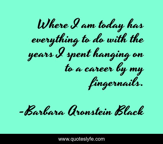This page presents the quote "Where I am today has everything to do with the years I spent hanging on to a career by my fingernails.". Author of this quote is Barbara Aronstein Black. This quote is about , pressure, diamonds,.