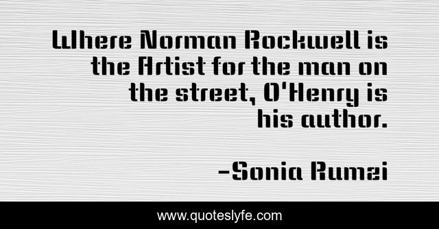 This page presents the quote "Where Norman Rockwell is the Artist for the man on the street, O'Henry is his author.". Author of this quote is Sonia Rumzi. This quote is about artist, norman-rockwell, o-henry, author,.