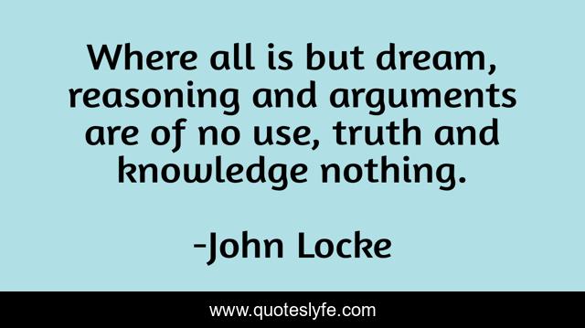 This page presents the quote "Where all is but dream, reasoning and arguments are of no use, truth and knowledge nothing.". Author of this quote is John Locke. This quote is about dream, knowledge, truth,.