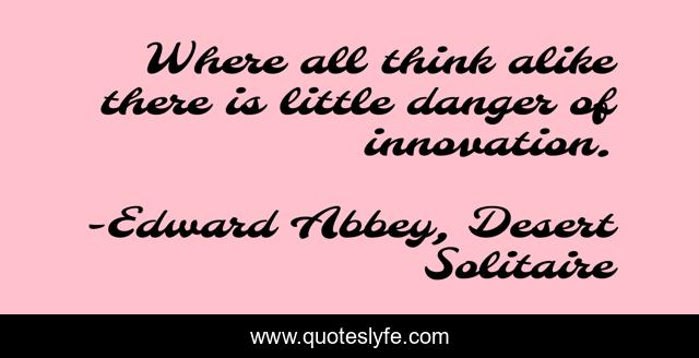This page presents the quote "Where all think alike there is little danger of innovation.". Author of this quote is Edward Abbey, Desert Solitaire. This quote is about individuality, creativity, innovation,.