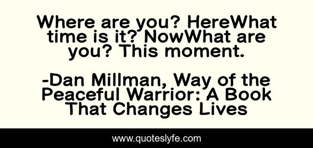"Dan Millman, Way of the Peaceful Warrior: A Book That Changes Lives Quotes." Quoteslyfe.com, 2025. Fri. 05 Dec. 2025. <https://www.quoteslyfe.com/quote/Where-are-you-HereWhat-time-is-it-12447>.