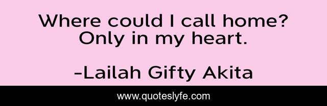 This page presents the quote "Where could I call home? Only in my heart.". Author of this quote is Lailah Gifty Akita. This quote is about heart, lailah-gifty-akita-affirmations, family, positive-outlook, house, christian-living, home,.