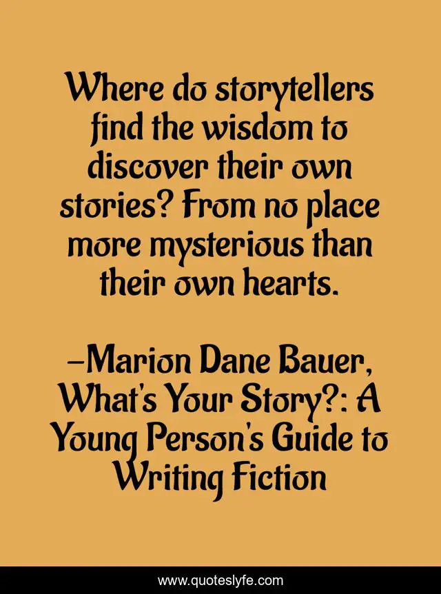 "Marion Dane Bauer, What's Your Story?: A Young Person's Guide to Writing Fiction Quotes." Quoteslyfe.com, 2025. Fri. 05 Dec. 2025. <https://www.quoteslyfe.com/quote/Where-do-storytellers-find-the-wisdom-to-231480>.