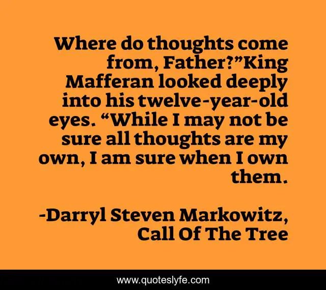 "Darryl Steven Markowitz, Call Of The Tree Quotes." Quoteslyfe.com, 2025. Sat. 06 Dec. 2025. <https://www.quoteslyfe.com/quote/Where-do-thoughts-come-from-Father-King-130080>.