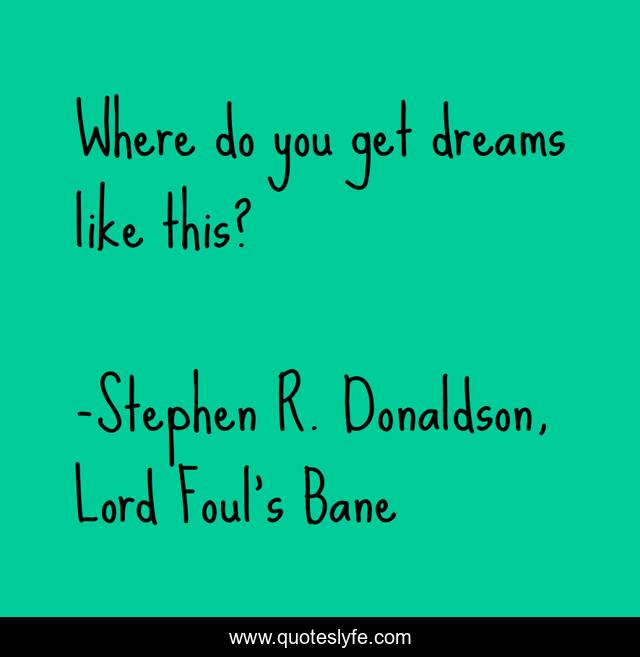 "Stephen R. Donaldson, Lord Foul's Bane Quotes." Quoteslyfe.com, 2025. Sat. 06 Dec. 2025. <https://www.quoteslyfe.com/quote/Where-do-you-get-dreams-like-this-81982>.
