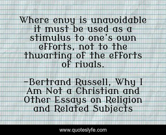 This page presents the quote "Where envy is unavoidable it must be used as a stimulus to one’s own efforts, not to the thwarting of the efforts of rivals.". Author of this quote is Bertrand Russell, Why I Am Not a Christian and Other Essays on Religion and Related Subjects. This quote is about envy, rivalry,.