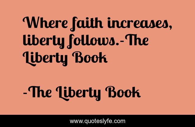 "The Liberty Book Quotes." Quoteslyfe.com, 2025. Mon. 08 Dec. 2025. <https://www.quoteslyfe.com/quote/Where-faith-increases-liberty-follows-The-Liberty-70676>.