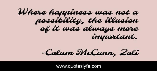 This page presents the quote "Where happiness was not a possibility, the illusion of it was always more important.". Author of this quote is Colum McCann, Zoli. .