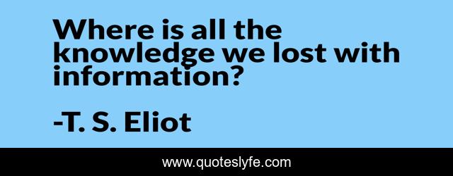 This page presents the quote "Where is all the knowledge we lost with information?". Author of this quote is T. S. Eliot. This quote is about information, lost,.