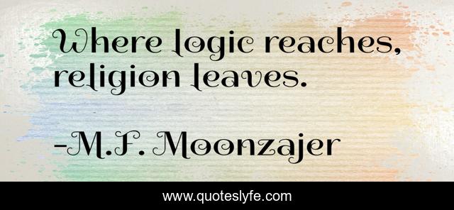 This page presents the quote "Where logic reaches, religion leaves.". Author of this quote is M.F. Moonzajer. This quote is about religion, logic,.
