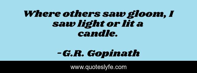 "G.R. Gopinath Quotes." Quoteslyfe.com, 2025. Mon. 08 Dec. 2025. <https://www.quoteslyfe.com/quote/Where-others-saw-gloom-I-saw-light-118467>.