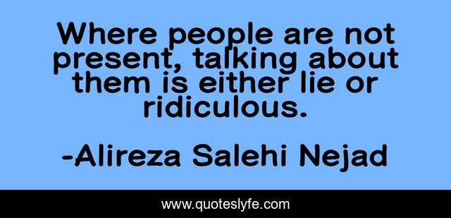 This page presents the quote "Where people are not present, talking about them is either lie or ridiculous.". Author of this quote is Alireza Salehi Nejad. This quote is about criticism, lie,.