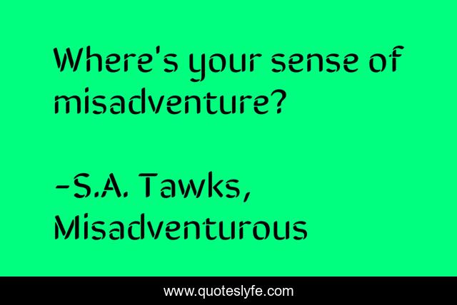 "S.A. Tawks, Misadventurous Quotes." Quoteslyfe.com, 2025. Mon. 08 Dec. 2025. <https://www.quoteslyfe.com/quote/Where-s-your-sense-of-misadventure-151641>.