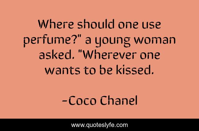 This page presents the quote "Where should one use perfume?" a young woman asked. "Wherever one wants to be kissed.". Author of this quote is Coco Chanel. This quote is about perfumes, chanel, kiss,.